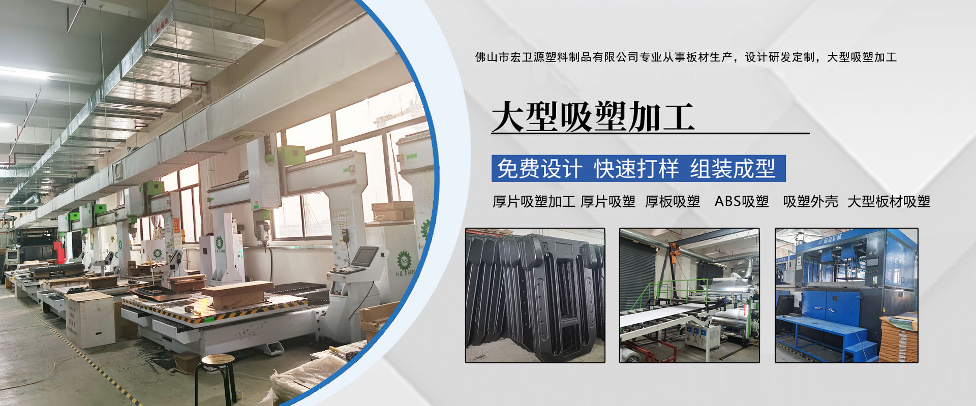 佛山市宏衛(wèi)源塑料制品有限公司(原東莞市宏衛(wèi)展示用品有限公司)成立于2007年,是集研發(fā),設(shè)計,生產(chǎn),服務(wù)為一體的專業(yè)吸塑加工廠,生產(chǎn)各種厚片吸塑,大型吸塑,亞克力制作等產(chǎn)品的現(xiàn)代化企業(yè)。從原料顆粒到厚片板材-鋁模制作-吸塑成型-五軸/三軸CNC加工-手板粘接打磨-組裝-噴油絲印-包裝出口等一條龍服務(wù)。本公司配備厚片吸塑機(jī)11臺(4000*2000*800 )、5軸數(shù)控中心9臺,平面CNC多臺 、亞克力激光機(jī)、分割機(jī) 、折灣機(jī)等先進(jìn)生產(chǎn)設(shè)備,確保了樣品制作和批量生產(chǎn)的精度和進(jìn)度。